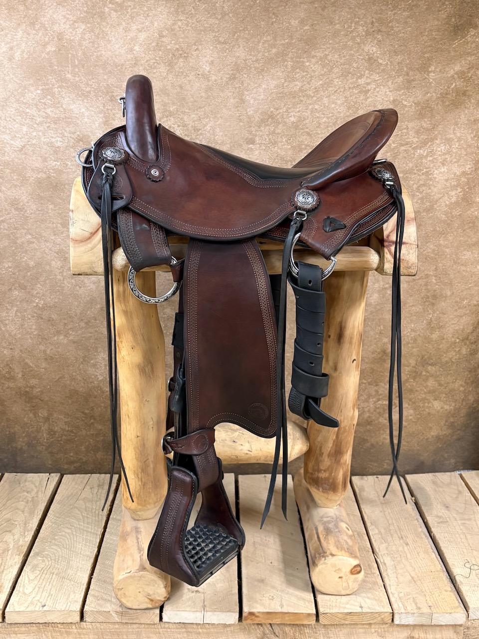 24.4 lbs with stirrups and latigo